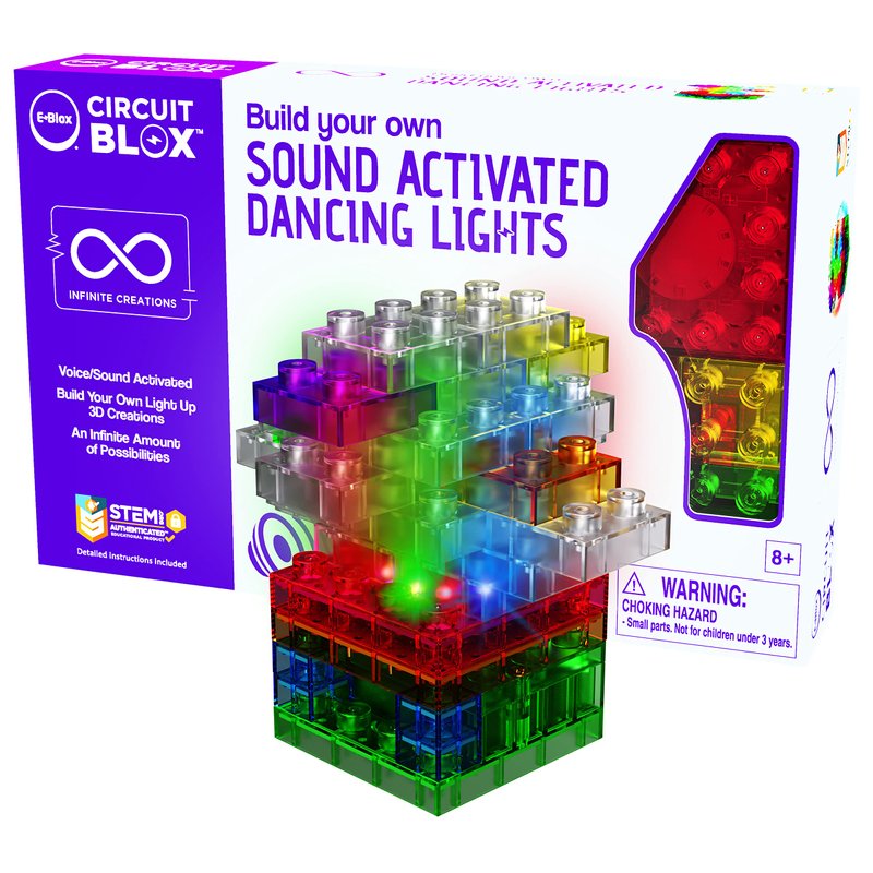E-BLOX Build Your Own Sound Activated Dancing Lights STEM Kit, Reacts to Voice & Dances to Music, Building Blocks Circuit Toy Set for Kids, Birthday Gift, Boys, Girls, 5+