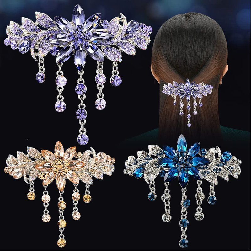 E EMZHOLE Luxury Hair Barrettes Flower Tassel Design Spring Clip Rhinestone Hairpin Crystal Hair Clip Hair Accessories for Women Girls (Purple)