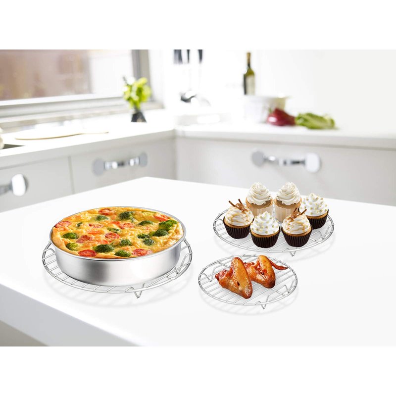 - VERSATILITY - Perfect for cooling and baking cookies, pies, and cakes, Steaming vegetables and meats, Elevating food above the grease, Layering food to cook a lot more, Also can use as a trivet for hot dishes
