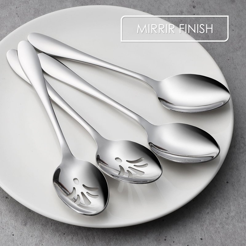 - 4 PIECE SET - E-far 4-piece stainless steel serving spoons set includes: 2 x Serving Spoons for removing food from a main dish to individual plates, 2 x Serving Slotted Spoons for straining food that has been soaking in liquid, Perfect for everyday dinners as well as holiday meals