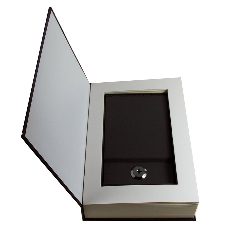 The Hidden Book Lock Box features a solid steel construction in a compact lightweight design. This compact lock box is disguised to appear like a hard back paper book. From the exterior this safe looks 100% like the well-known novel. The exterior is made of real paper and individual pages. On the inside is a strong compact steel safe. This easily portable design can be stored and hidden in plain view for safekeeping. Included with the safe is a set of keys. Ideal for safely storing money, passports, and jewelry
