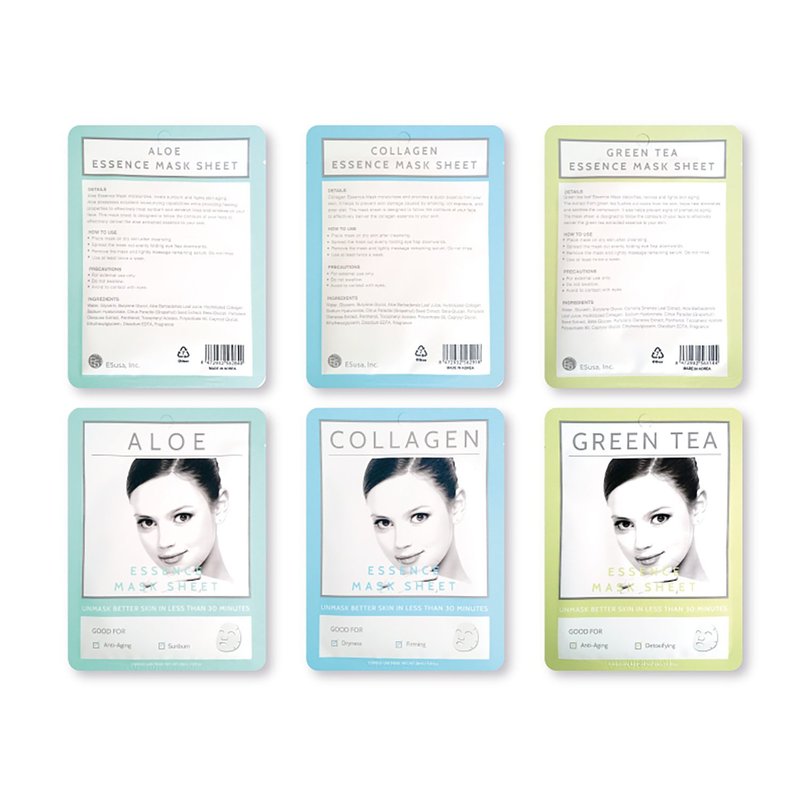 E5 Sheet Mask - Blue Set (Aloe, Green Tea, Collagen) 24 pcs
