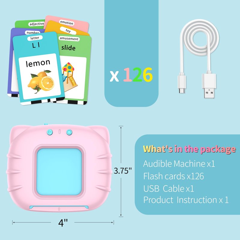 - FUN LEARNING Toys: Start an educational journey with Talking flash cards, set of 252 sight words, 15 themes, from ABC letters, numbers, animals, and shapes, to colors, nature, seasons, months, etc, your child will explore a wide range of topics. Insert the animal and vehicle cards, the machine will imitate their voices in a hilarious manner. Great educational toys for toddlers 1-3.