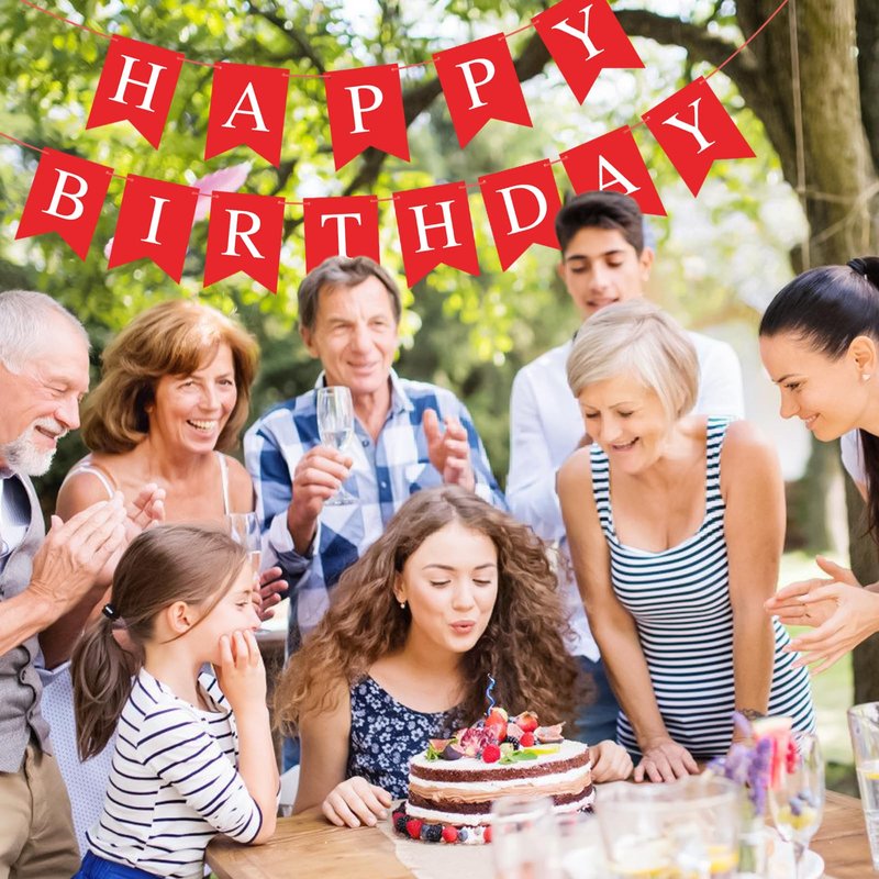 Eaezerav Red Happy Birthday Banner Bunting Banner Sign, Happy Birthday Garland Tea Party Decorations, Christmas Thanksgiving Birthday Party Supplies for for Kids and Adults