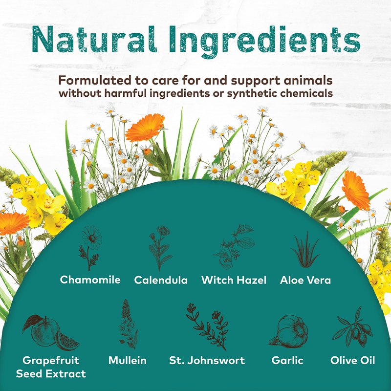 - NATURAL: Uses the naturally occurring benefits of natural, medicinal herbs such as chamomile, calendula, aloe vera gel, grapefruit seed extract, mullein oil, and St. John’s wort.