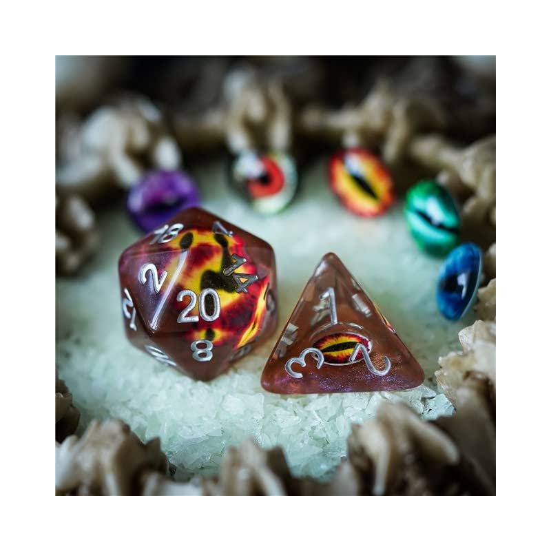 Earth Dragon Eye DND Resin Dice Set for Dungeons and Dragons, D&D, D20, D and D, Polyhedral Resin Dice, Dungeons and Dragons Gifts, Accessories