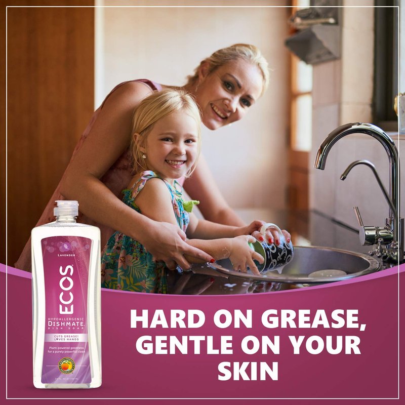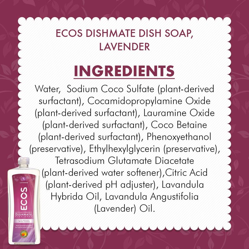 Earth Friendly Products ECOS Dishmate, Dishwashing Liquid, Natural Lavender, 25 oz, grape (97276)