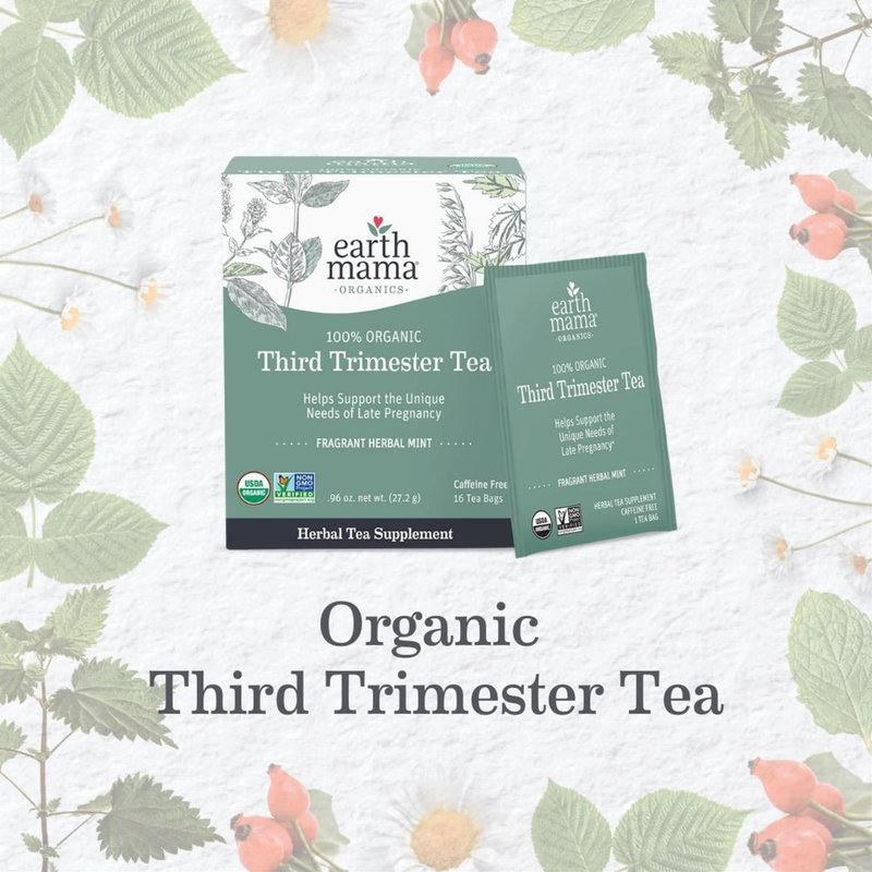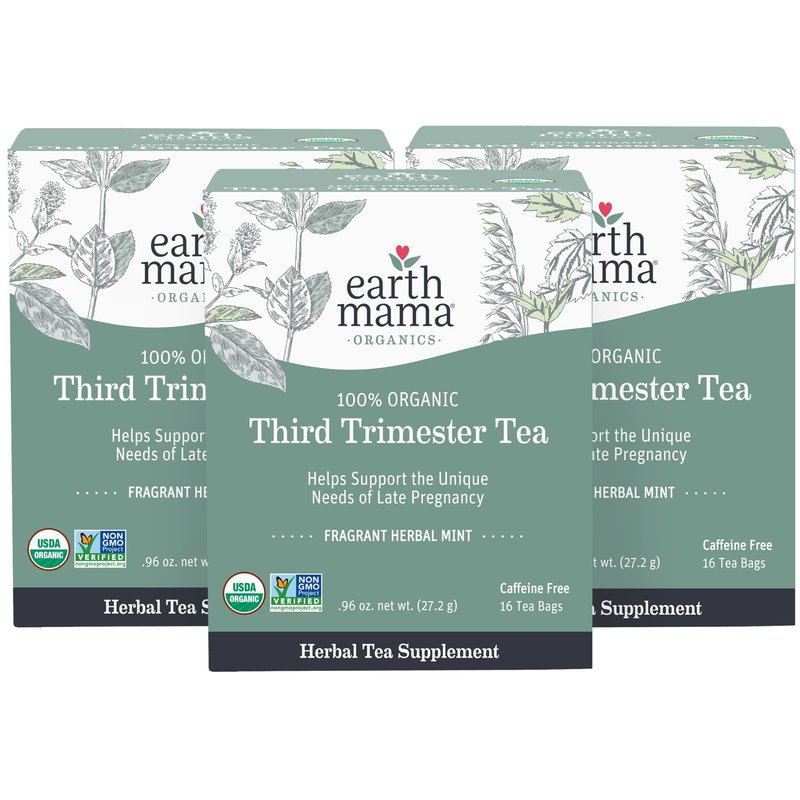 Earth Mama Organic Third Trimester Tea Bags | 100% USDA Organic Herbal Tea for Late Pregnancy Comfort + Childbirth Preparation, 16 Teabags Per Box (3-Pack)