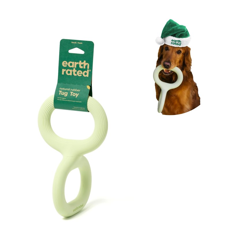 Earth Rated Tug of War Dog Toy, Interactive Pull Toy for Adult and Puppy Dogs, Ergonomic Grip, Natural Rubber, Small, Green