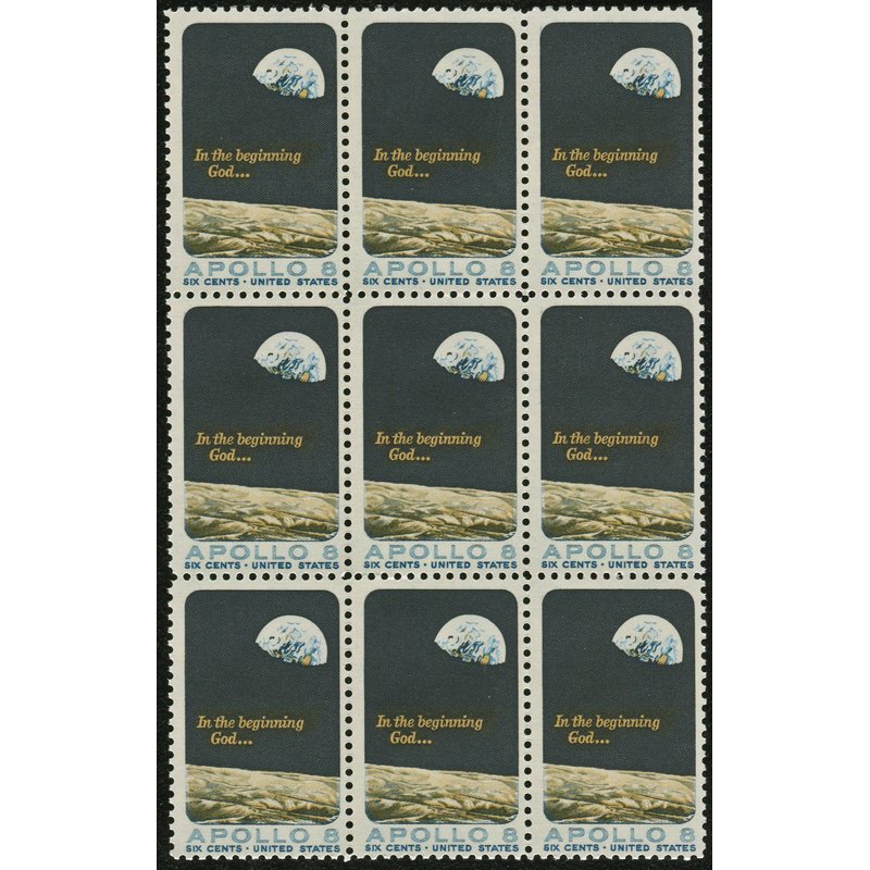 EARTH RISE ~ APOLLO 8 ~ FIRST HUMAN SPACE FLIGHT ~ MOON ~ EARTH #1371 BLOCK OF 9 X 6 US Postage Stamps