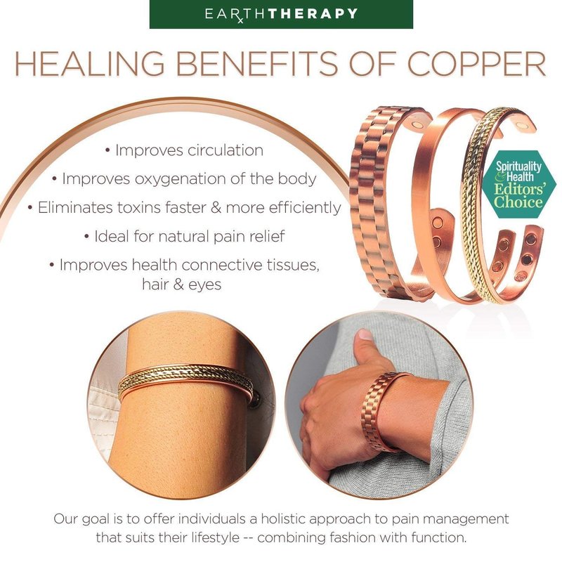 - WE STAND BEHIND OUR BRACELETS: Match your style with our magnetic jewelry designed specifically for arthritis pain relief. If you’ve tried copper healing bracelets from Smarter Lifestyle, Rainso, Coppervast, and Viterou – be sure to try our uniquely crafted and designed magnetic healing bracelets for both men and women. We’re so confident you’ll love your Earth Therapy Bracelet, we offer a 60 day Full Satisfaction Money Back Guarantee.