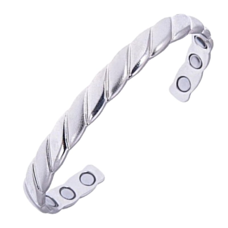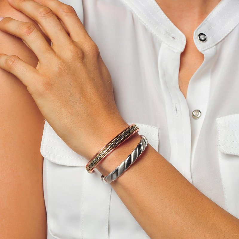 Earth Therapy Original Copper Magnetic Cuff Bracelet for Men & Women – Silver Braided Style – Adjustable - Ultra Strength