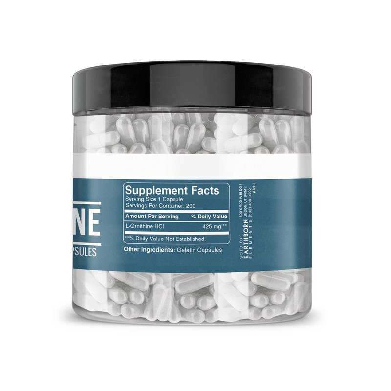 Earthborn Elements (200 Capsules L-Ornithine HCl, Amino Acid, Protein Synthesis