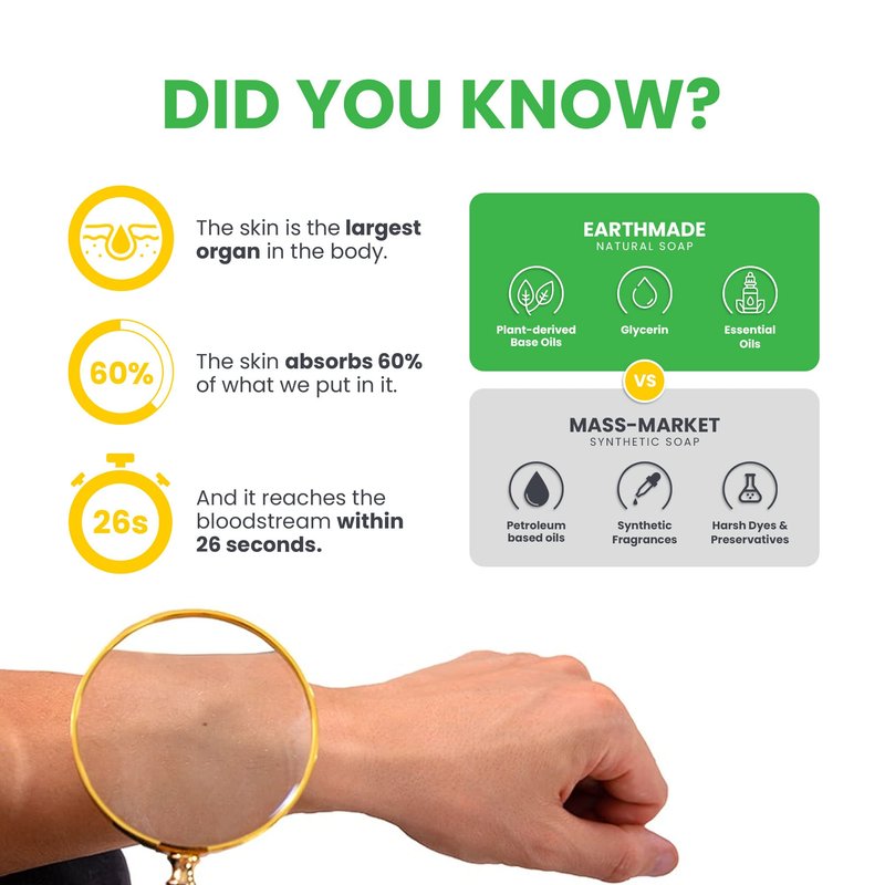 - Clean, Wholesome Ingredients - EarthMade ensures that you’re investing in good quality skin care and natural bath products. That’s why all our skin soaps have "no" preservatives, plastic and harmful chemicals.