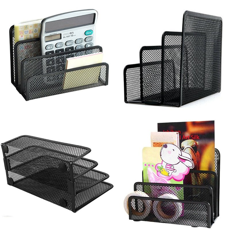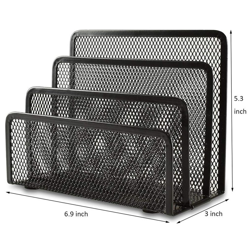 - CLASSIC DESIGN LETTER ORGANIZER: Metal Mesh Desktop Supplies have a simple and elegant industrial look and sturdy metal construction. Rust resistant with black powder-coated steel. No installation needed!