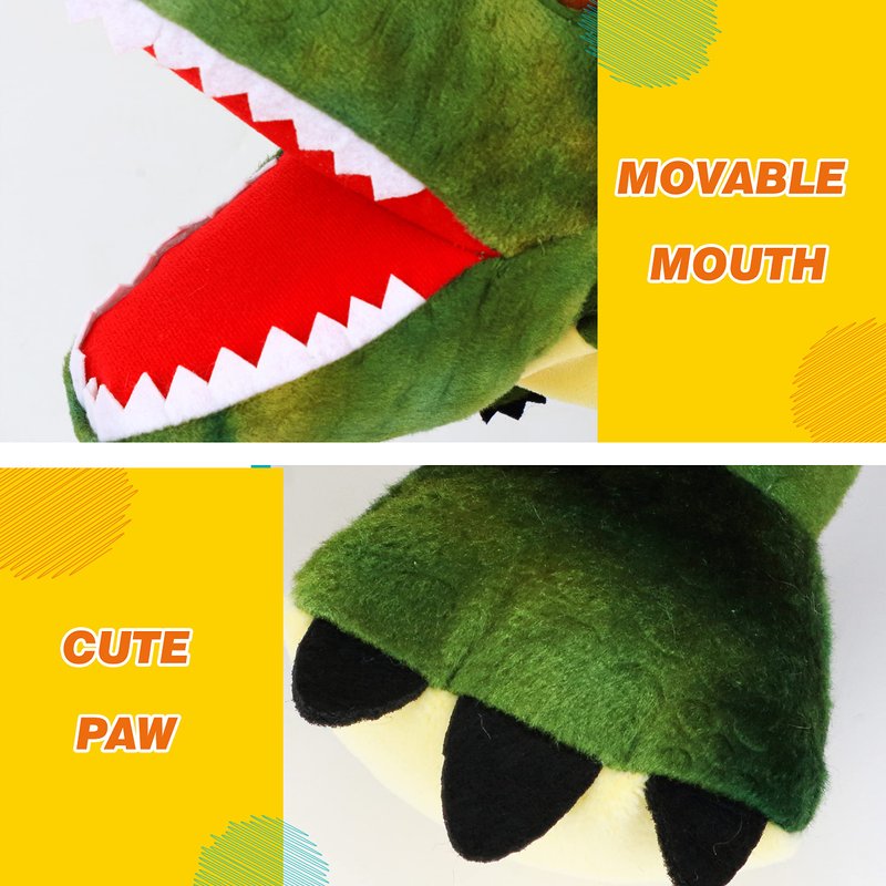 - DELICATE DESIGN: This dinosaur hand puppet uses advanced craftsmanship and workmanship, it is safe to touch the baby's skin, and the size of the dinosaur hand puppet is suitable for most people's palms.If the plush dinosaur hand puppet is dirty, you can put it directly into the washing machine to clean it, eliminating the trouble of hand washing and allowing you to enjoy the leisure time with your children