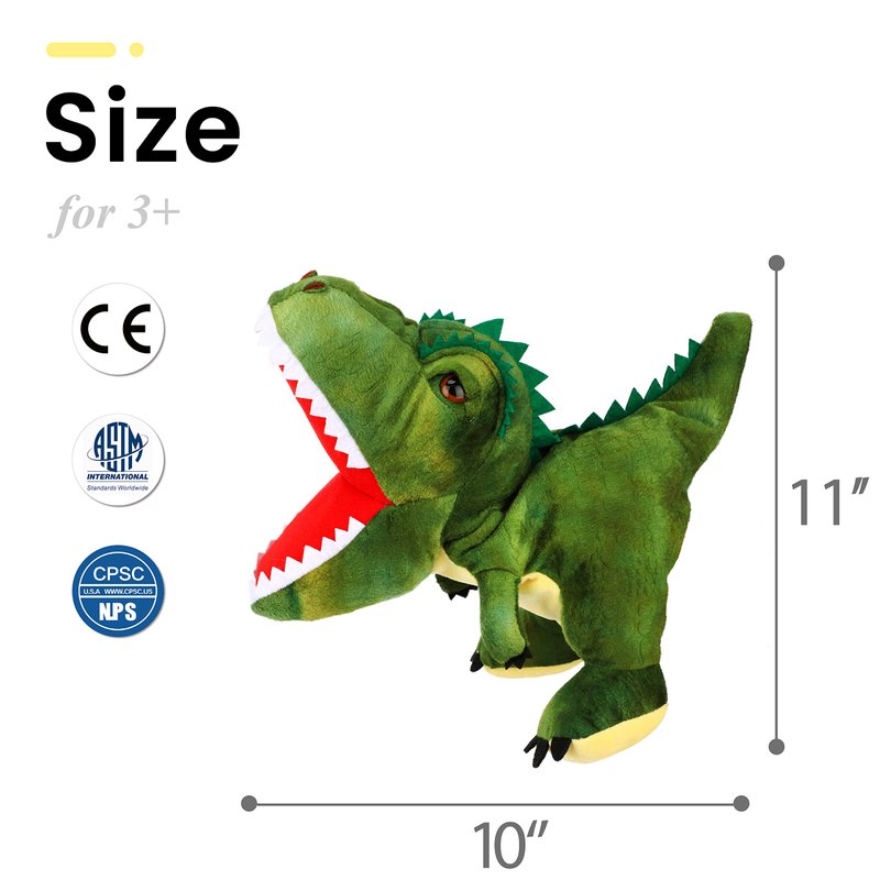 Easfan Plush Dinosaur Hand Puppet with Movable Mouth T-Rex Stuffed Animal Puppet for Imaginative Pretend Play Storytelling Gifts for Kids Boys Girls on Birthday Christmas, 11''