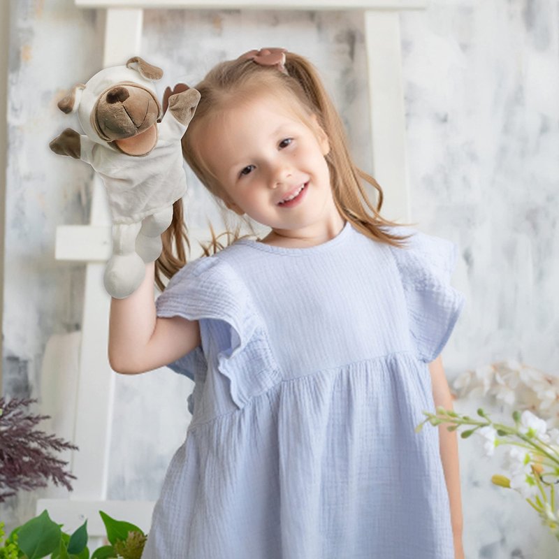 - DELICATE DESIGN: This puppy hand puppet uses advanced craftsmanship and workmanship, it is safe to touch the baby's skin, and the size of the dog hand puppet is suitable for most people's palms