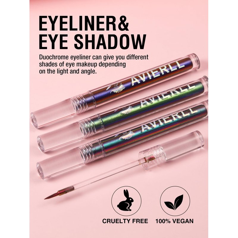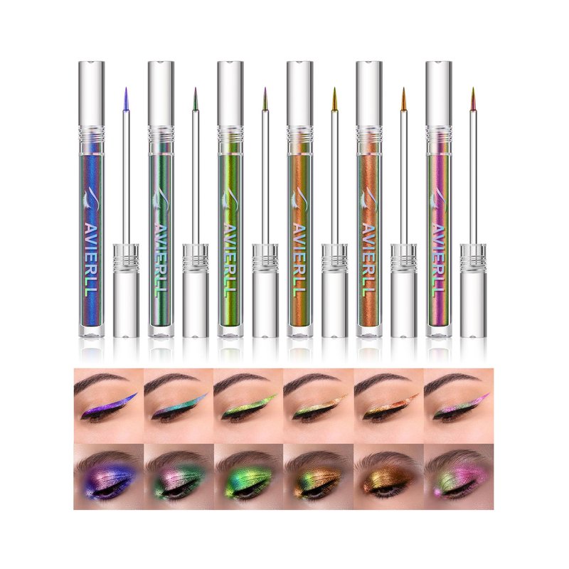 - ❤【Metallic Liquid Chameleon Eyeliner】6 different colors of Metallic liquid eyeliner, respectively: Gold, Green, Champagne, Dark blue, and Purple, chameleon eyeliner liquid is designed for multi-colored eye makeup, it can also be used as an eye shadow to embellish eyes, to create a multitude of shining eye looks. It changes to 2-3 colors when viewed from different angles with the light. Highlight the eye contour and make your eyes more glamorous.