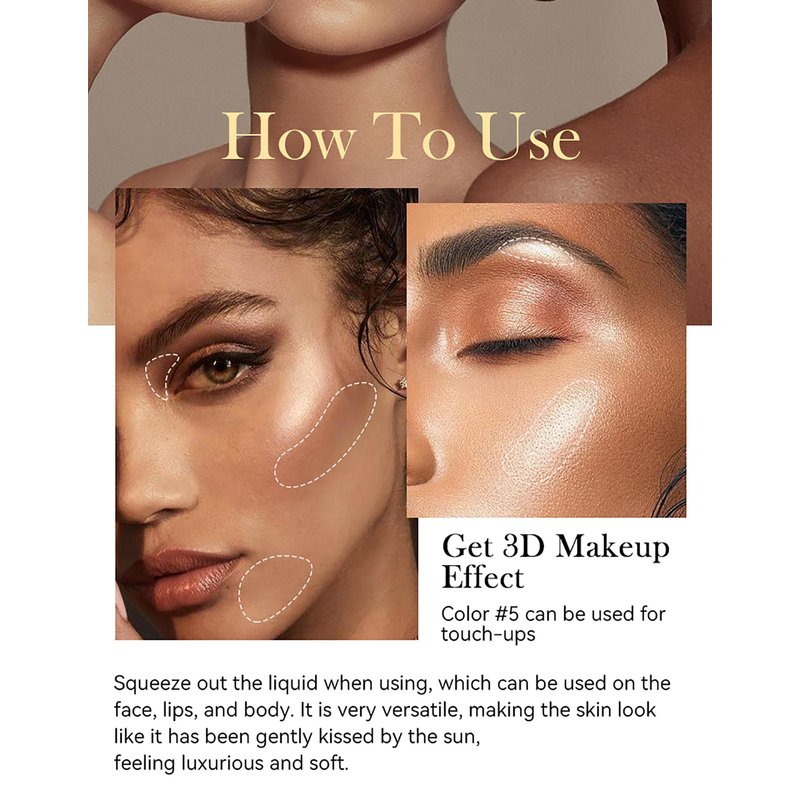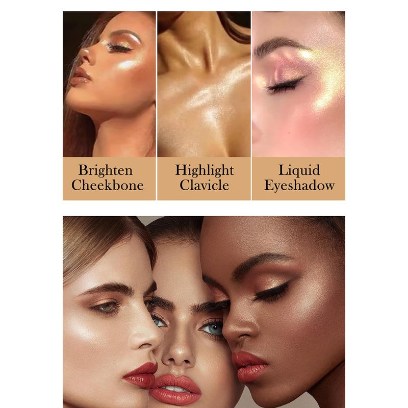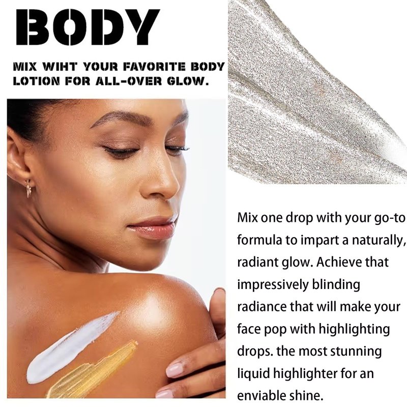 - ❤【Chameleon Glow Liquid Highlighter】Customize your glow with this chameleon Glow Liquid Highlighter, all-over highlighter, and natural three-dimensional pearlescent brightener, adding radiance to the face and leaving the skin glowing, making it look sun-kissed, and your skin sparkles in the sun. Leaving a beautifully subtle glow on the skin, the ultra-fine, light-absorbing pearls let you easily go from a soft glow to a sheer pop of glow in seconds.