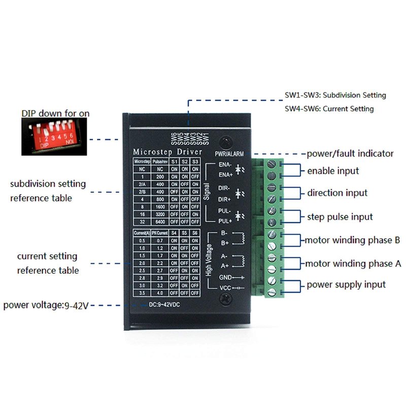 - Suitable for drive Two-phase stepping motor dynamic voltage 9V to 42V, the maximum drive current is less than 4A.