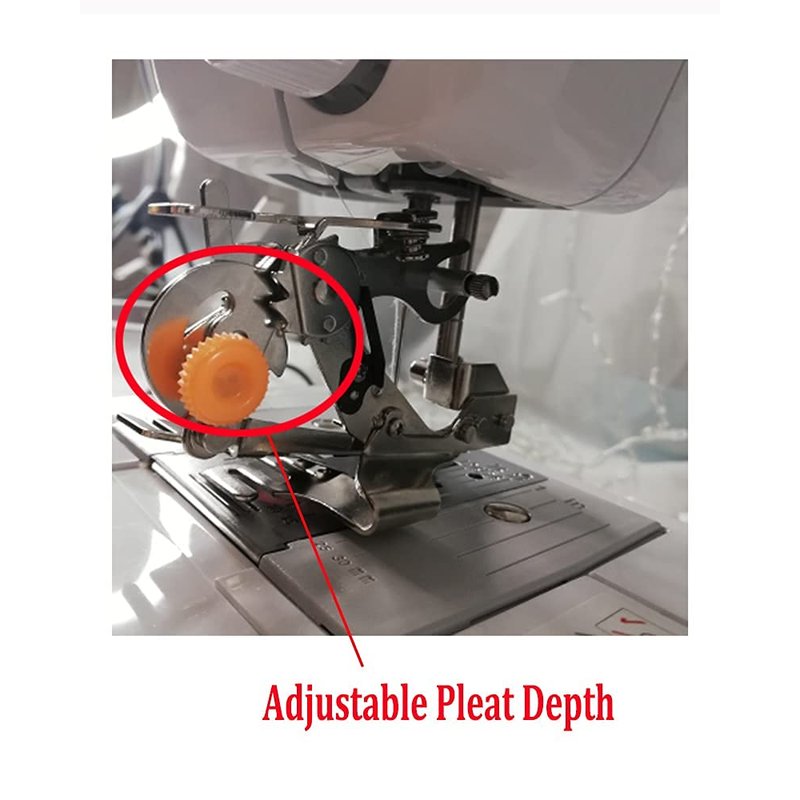 - ✔ 【Adjustable】: The knob changes how deep the pleat or ruffle is. For smaller pleats, tighten it. For larger pleats, loosen it. You can also adjust the pleats by varying the stitch length on your sewing machine.