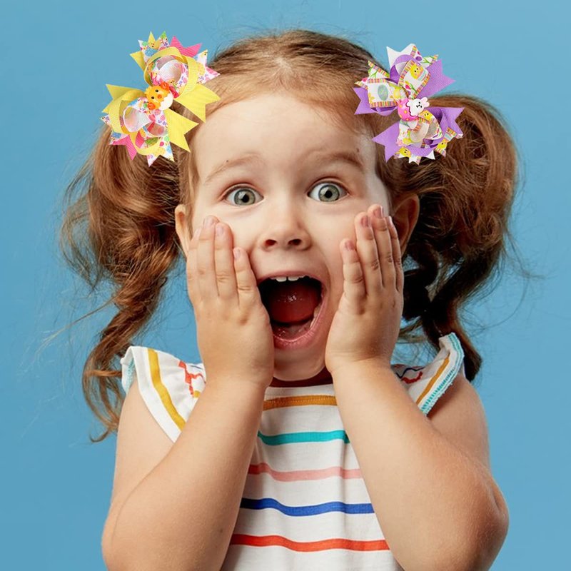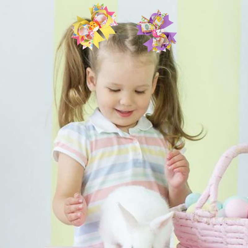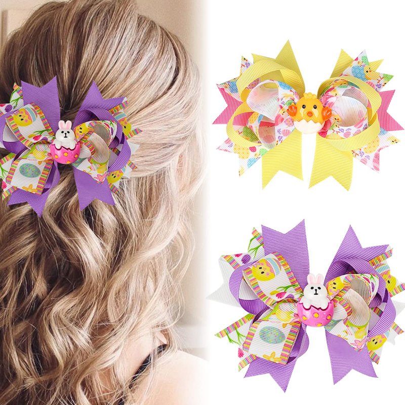 Easter Hair Clips Easter Bows Clips Grosgrain Hair Barrettes Bunny Chick Headwear Boutique Hairpin Rabbit Chick Egg Hair Accessories Alligator Clips Supply Party Costume Decoration for Girls Kids 2PCS