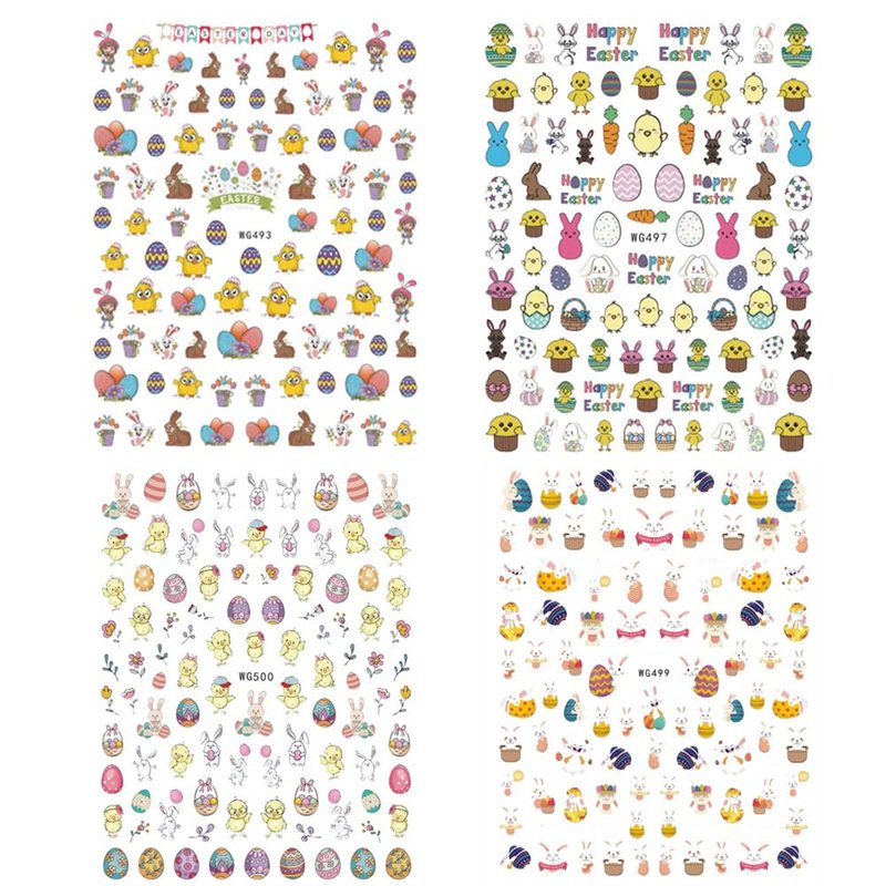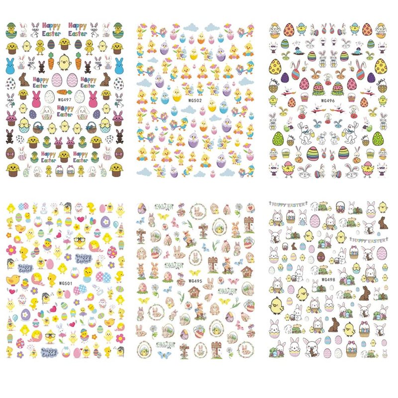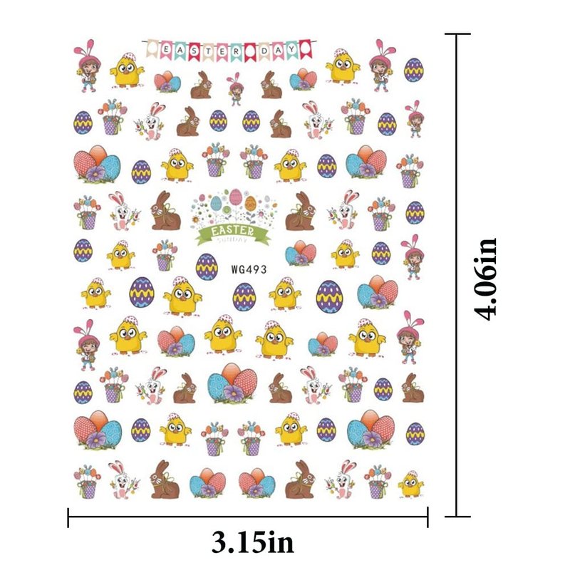 - Easter elements, rabbits, chickens, eggs, flowers, Carrots, Easter eggs, chicks, butterflies, etc. These colorful nail stickers will make you more beautiful and charming