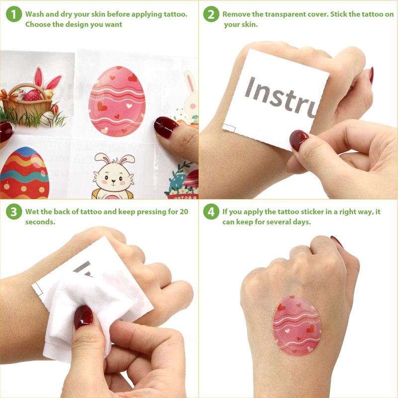 - Different Unique Designs: Each tattoos is carefully designed, which contains bunny, chick, egg, basket and more