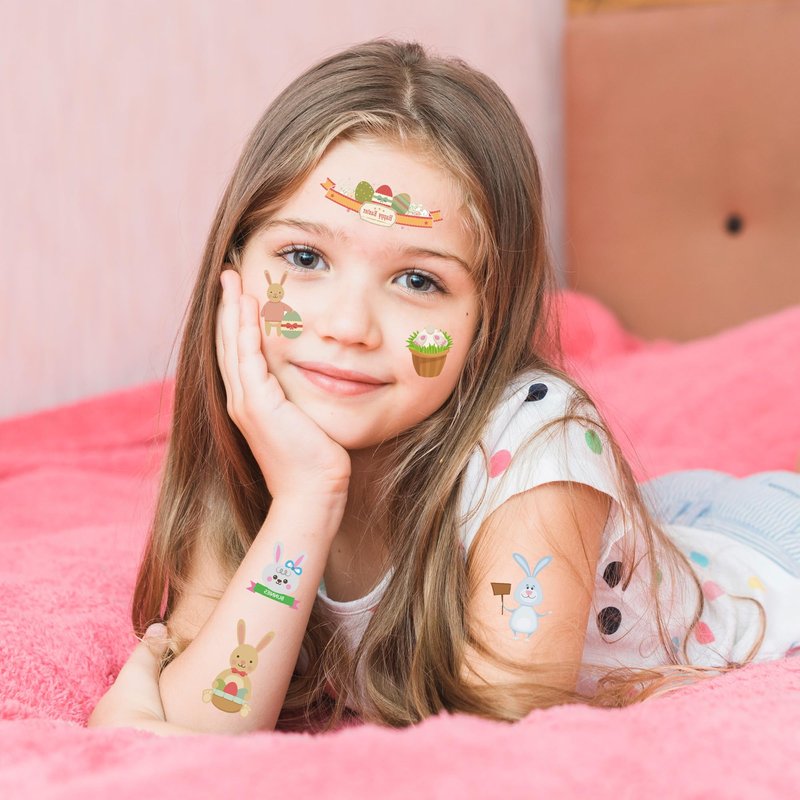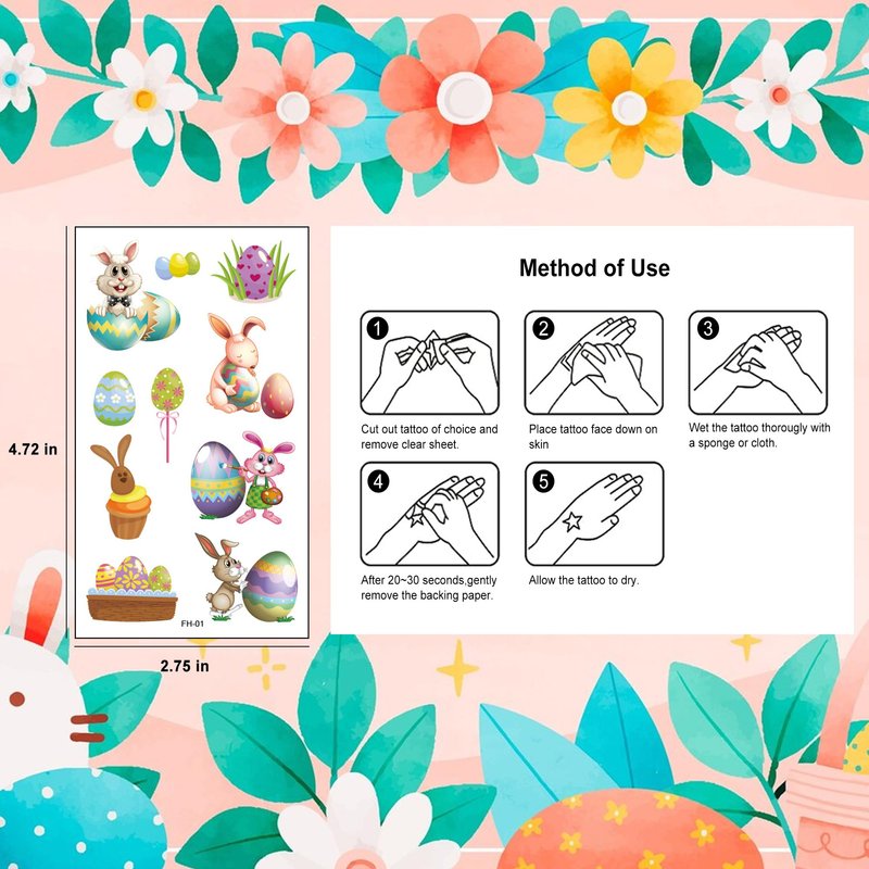 - 【Easter Gifts】These tattoos stickers are perfect for kids Easter party supplies, party favors, party decorations, Easter basket stuffers, goodie bag fillers, pinata, games, gifts for kids and so on.