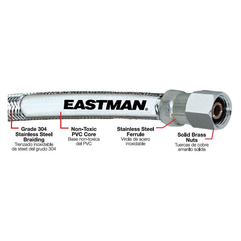 Eastman Ice Maker Connector, 1/4 Inch Compression, 5 Foot Flexible Braided Stainless Steel Hose, 41033