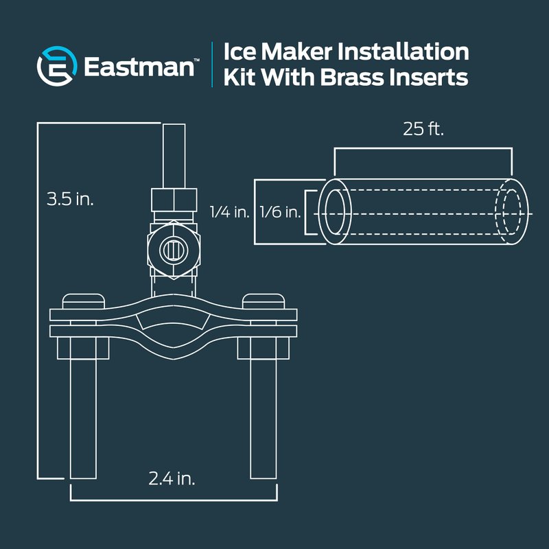 - WHAT IS INCLUDED: Universal ice maker installation kit includes (1) 25 ft x 1/4 inch polyethylene tube roll, (1) self-piercing saddle valve, (1) 1/4 inch compression x 1/4 inch compression union, (2) brass tube inserts, and (2) Delrin sleeves