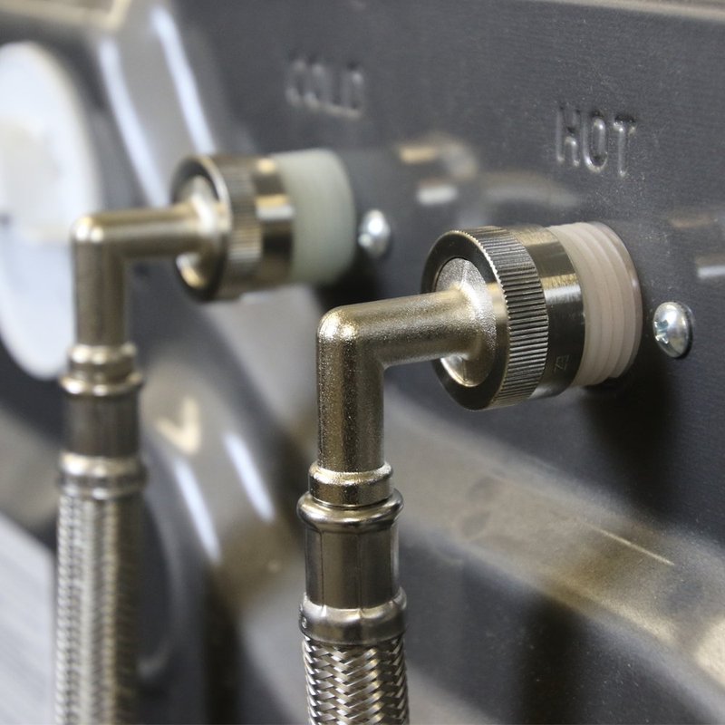 - UNIVERSAL FLEXIBLE WASHING MACHINE CONNECTOR: The Eastman braided washing machine connector is the standard in supply lines. This 6 ft. flexible supply line is equipped with a 90 degree elbow and 3/4 in. FHT x 3/4 in. FHT connections