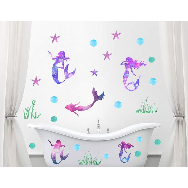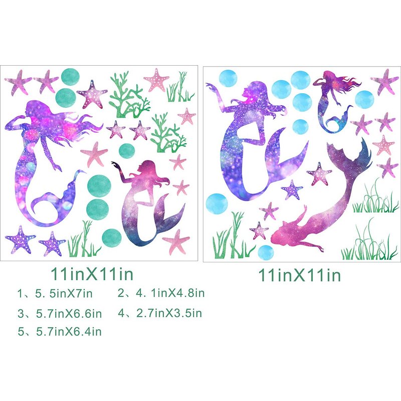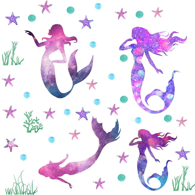 Easu Mermaid Wall Decals Girls Nursery Bedroom Wall Sticker Girls Wall Decals Mermaids Decorative Peel & Stick Wall Decals