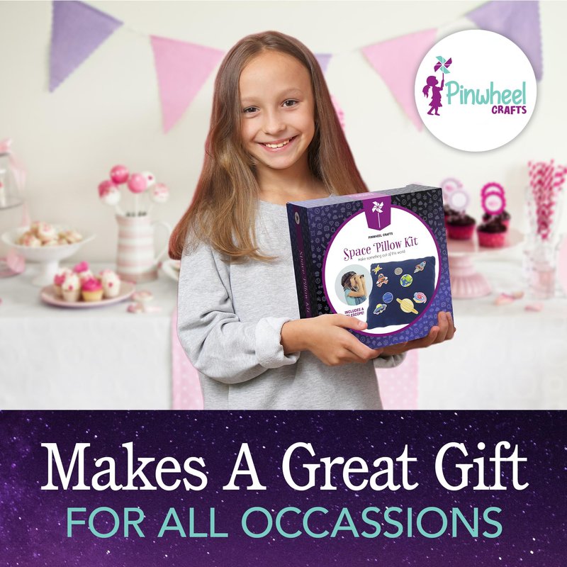 Introducing our Space Pillow Kit 🪐, a captivating craft adventure designed for young astronauts 👨🚀between the age of 3-12. With this kit, children embark on a creative journey to explore the wonders of the cosmos, all while developing basic sewing skills. Inside, they'll find everything they need to bring their outer space-themed pillow to life, including plush filling and easy-to-follow instructions. It's the perfect hands-on project that combines learning and fun. This Space Pillow Kit isn't just a craft; it's a lesson in the solar system and its planets, making learning an interactive and enjoyable experience. Ideal for gifting to space enthusiasts or as space toys for boys aged 5-8, this kit ignites the spark of curiosity about the universe. As part of our extensive line of kids' crafts and sewing kits, it's a testament to our commitment at Pinwheel Crafts. We're dedicated to providing simple, hands-on crafts that allow kids to nurture their creativity, discover the joy of exploration, and learn that fun doesn't always rely on Wi-Fi access. Experience an engaging and exciting craft kit that eagerly awaits your child's expression. For even more plush crafting options, don't forget to explore our store, where you'll discover our unicorn pillow kit and panda pillow kit for kids.