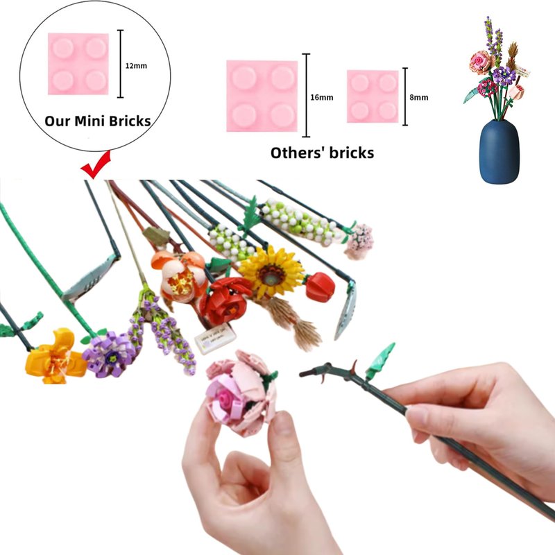 - ♚ Exquisite decoration: This bouquet is the perfect complement to your display, desk, or office. It comes with building blocks that you can assemble into a beautiful and timeless bouquet. Bring the beauty of flowers into your life without worrying about them withering. This gift is designed specifically for those who enjoy expressing their creativity and decorating their space with unique and elegant items. Fill your life with beauty with this unique bouquet of building blocks as a gift.