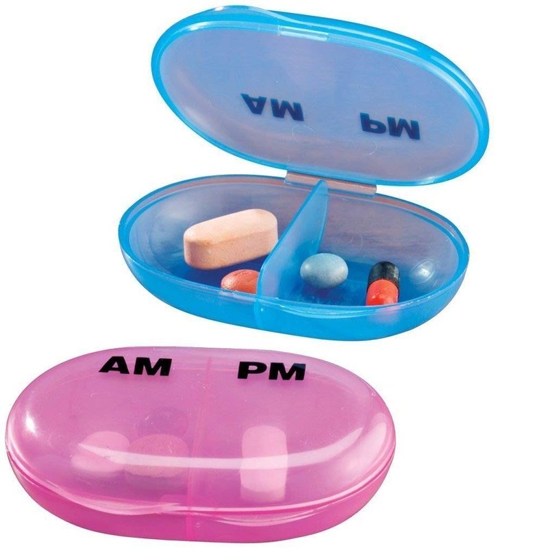 EasyComforts AM/PM Pocket Pill Organizer Set of 2, Colors may vary is a ultimate travel pill case - Pocket Med Pack features a compact size ideal for those needing a pill organizer for AM PM regimens. The travel pill organizer features a small 2" x 2.19" x 0.75" size, comfortably fitting in your pocket, bag, or purse. With a secure locking lid, you won't have to worry about the medication box opening while on the go. Pill planner can hold up to 25 tablets or pills. Colors may vary.