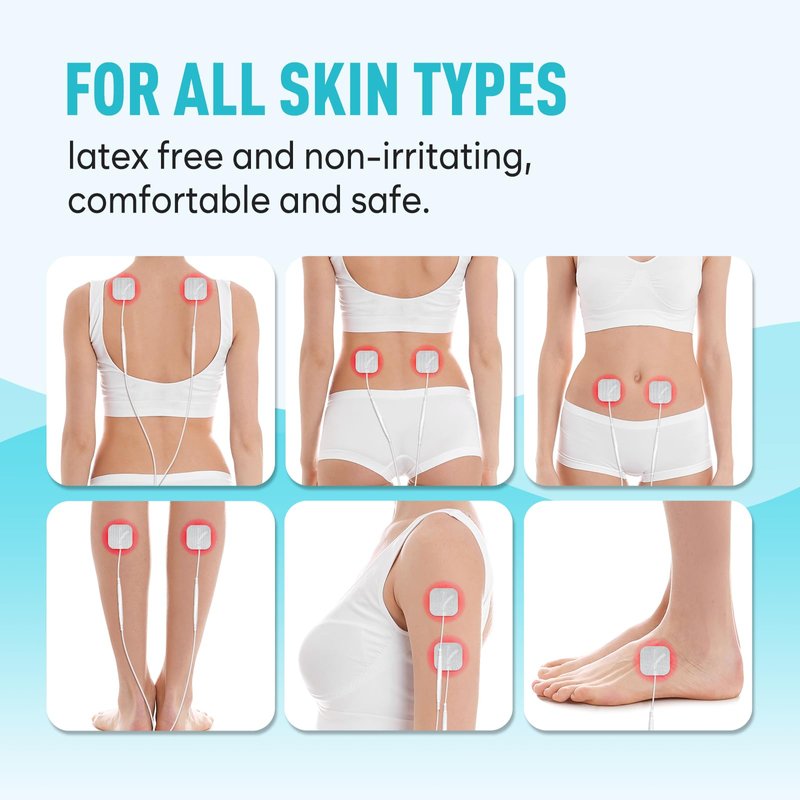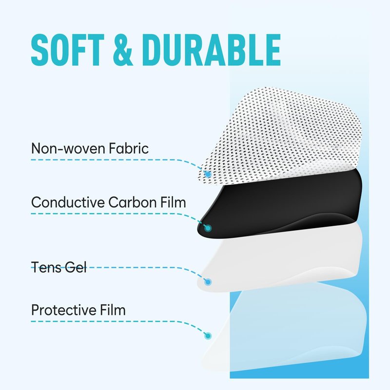 - ✔ This Adhering TENS Pads are Made of high-quality imported Reusable Carbon Adhesive Gel from Japan so No Irritating to skin.