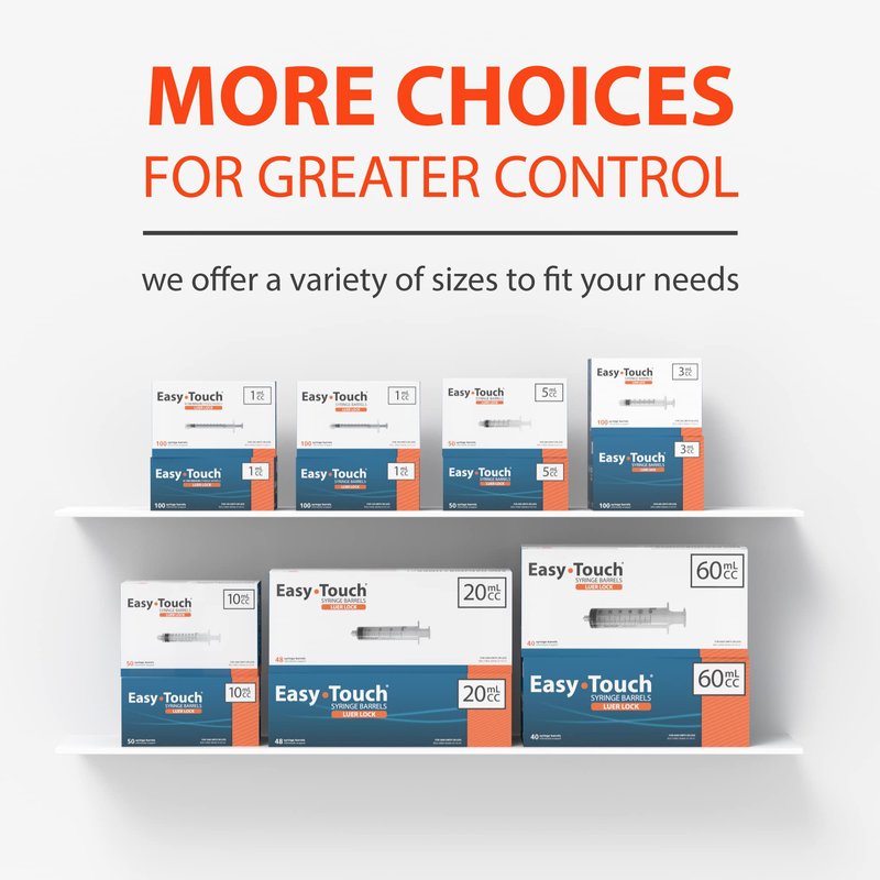 EasyTouch Luer-Lock Syringe Barrel, 1ML Syringe, Pack of 100