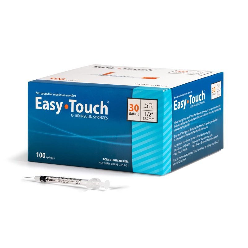 EasyTouch U-100 Insulin Syringe with Needle, 30G 0.5cc 1/2-Inch (12.7mm), Box of 100