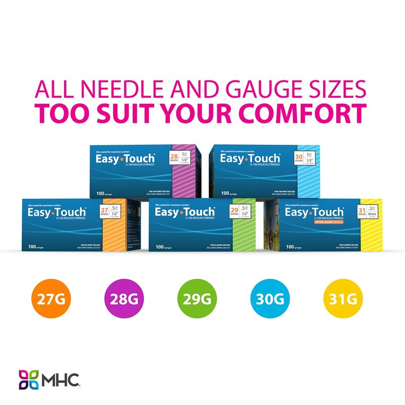 EasyTouch U-100 Insulin Syringe with Needle, 31G 0.5cc 5/16-Inch (8mm), Box of 100
