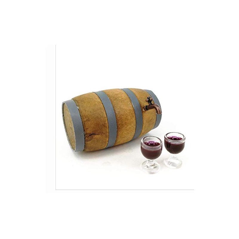 EatingBiting 1:12 Doll Mini House Christmas House Miniature Furniture Beer Barrel Cask Beer Keg Beer Mug 3Pcs Set (1 Beer Barrel & 2 Cup) Photography Props House Ornaments