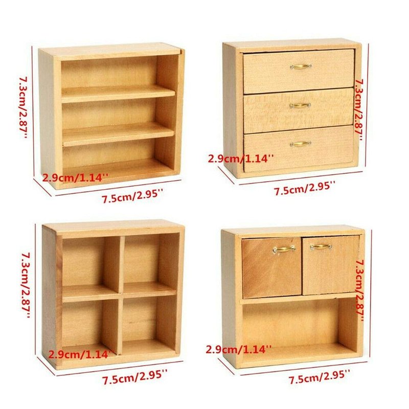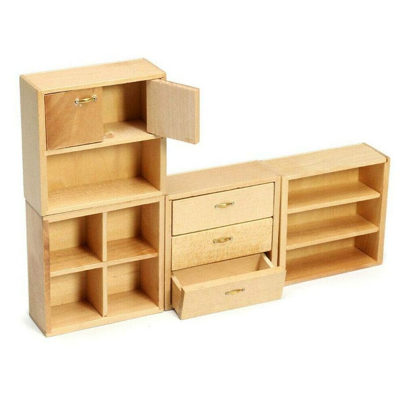 EatingBiting 1:12 Dollhouse Miniature Furniture Accessories Wooden Cabinet Cupboard Closet Various Styles of Furniture 4 Part Set Arbitrary Placement