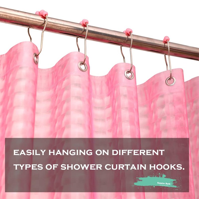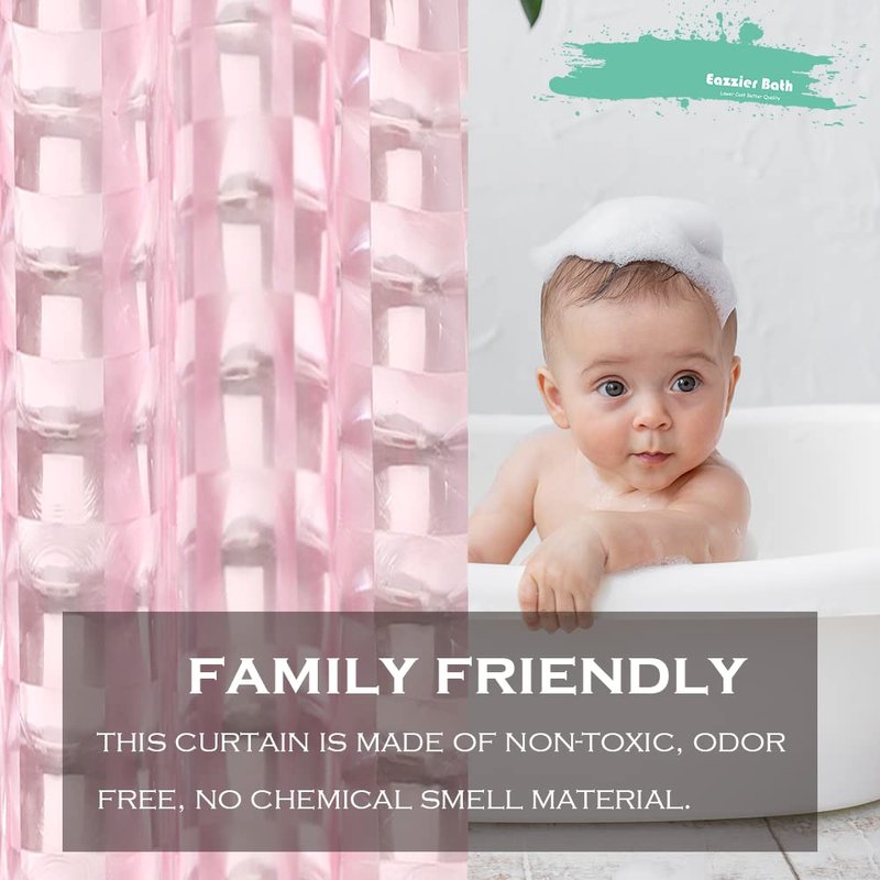 Eazzier Bath Blush Pink 3D Crystal Plastic Shower Curtain Liner, 72x72 Inch Thin Lightweight Plastic Bathroom Shower Showroom Inner Curtain with Rustproof Metal Grommet Holes and Weighted Magnets