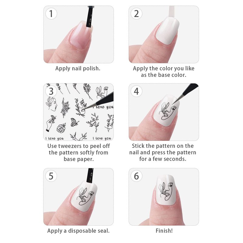 - High Quality: Nail stickers are made of high quality plastic, not limited to any nail. Suitable for all people and you can use it safely. You can apply a top coat to protect the nail sticker.