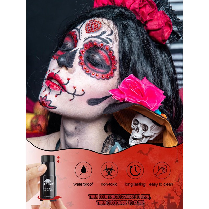 - 【Vegan&Cruelty-free】Face paint stick made of non-toxic,eco-friendly ingredints.Suitble for all kinds of skins.Won’t irritate skin.Notice:As with all cosmetics we advise that a small skin patch test is done before applying as everyone's skin is different.