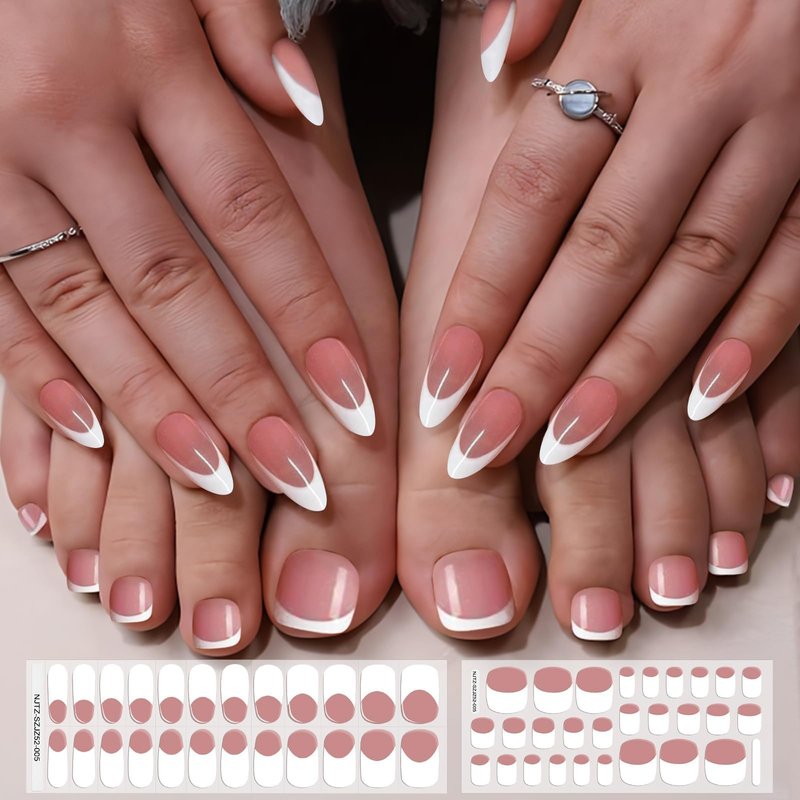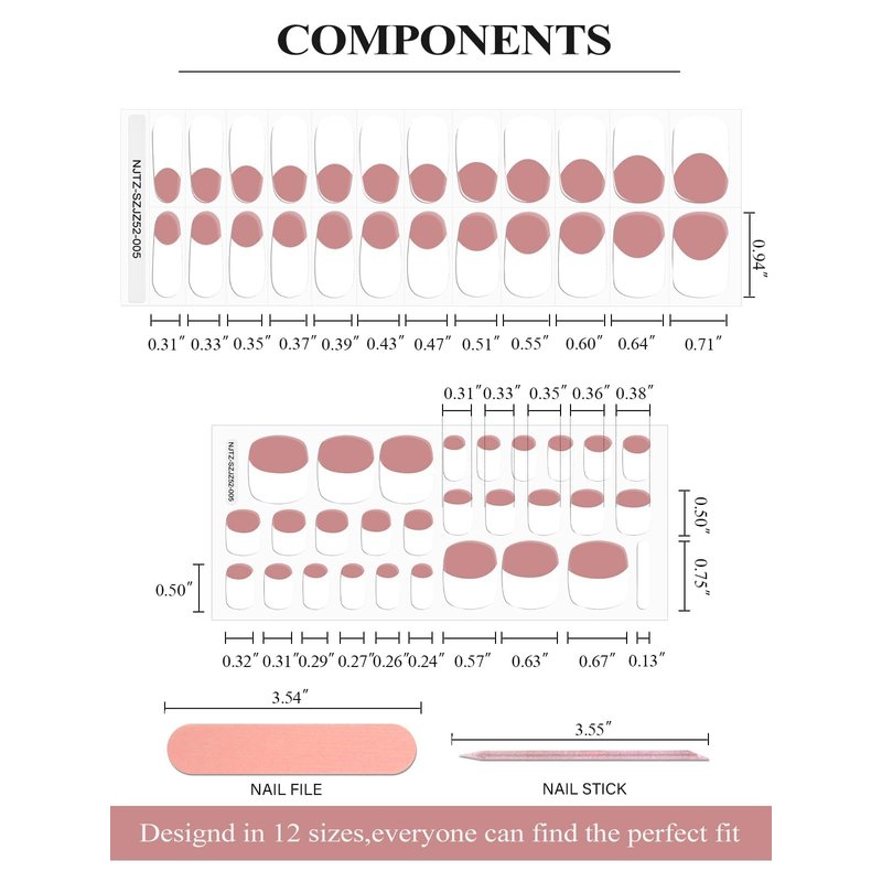 - Gel Nail Strips Set: The package contains 52pcs easy-to-use gel nail polish wraps(28pcs gel toenail strips&24pcs gel nail strips) in different sizes with 1 nail file, 1 nail stick. They are flexible that can be matched with any type of nail sizes and adjusted according to the shape, so they are wearable for different nail shapes.There are 14/12 sizes available. (Tips: The French style is more suitable for people with longer nails.)