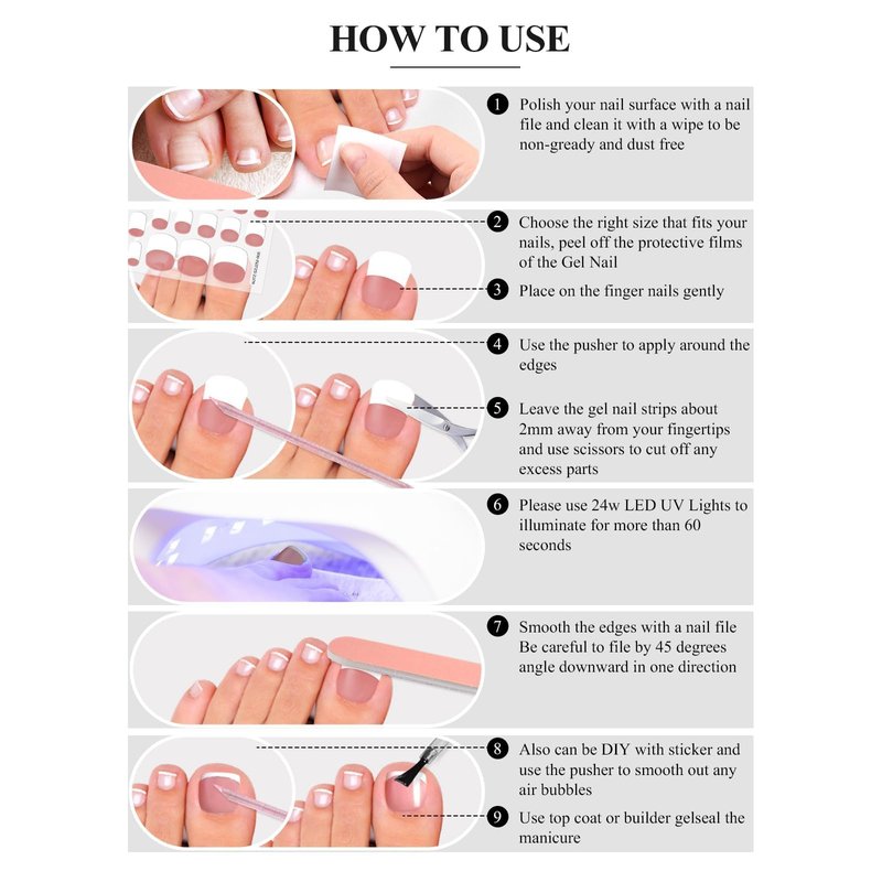 - Suitable for Most Occasions: You can enjoy DIY at home or with your friends and family, and the self-adhesive gel nail strips toe nail stickers are suitable for any occasions, such as for everyday, parties, dates, festivals, etc.