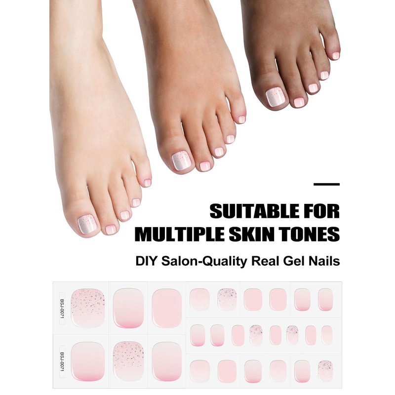 EBANKU Gel Toe Nail Stickers Cured Gel Nail Strips for Toes Gel Toenail Strips Nail Art Wraps Long-Lasting Toe Gel Nail Polish Wraps Gel Nail Art Stickers for Toes UV/LED Lamp Required (Gradient Pink)