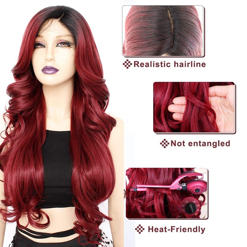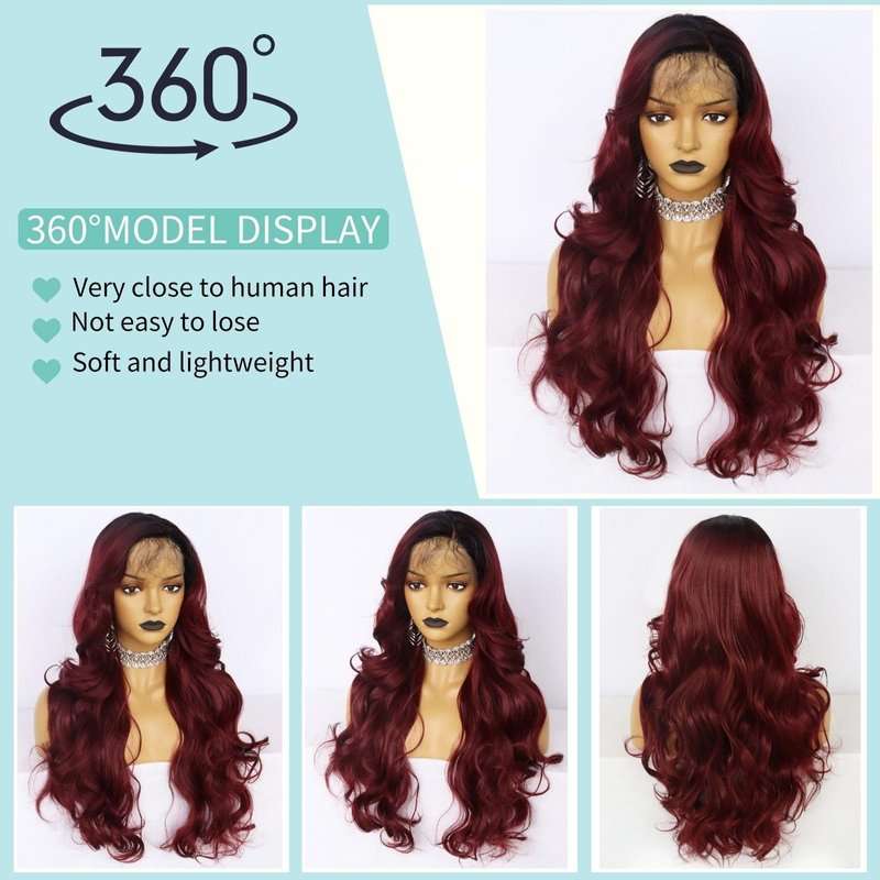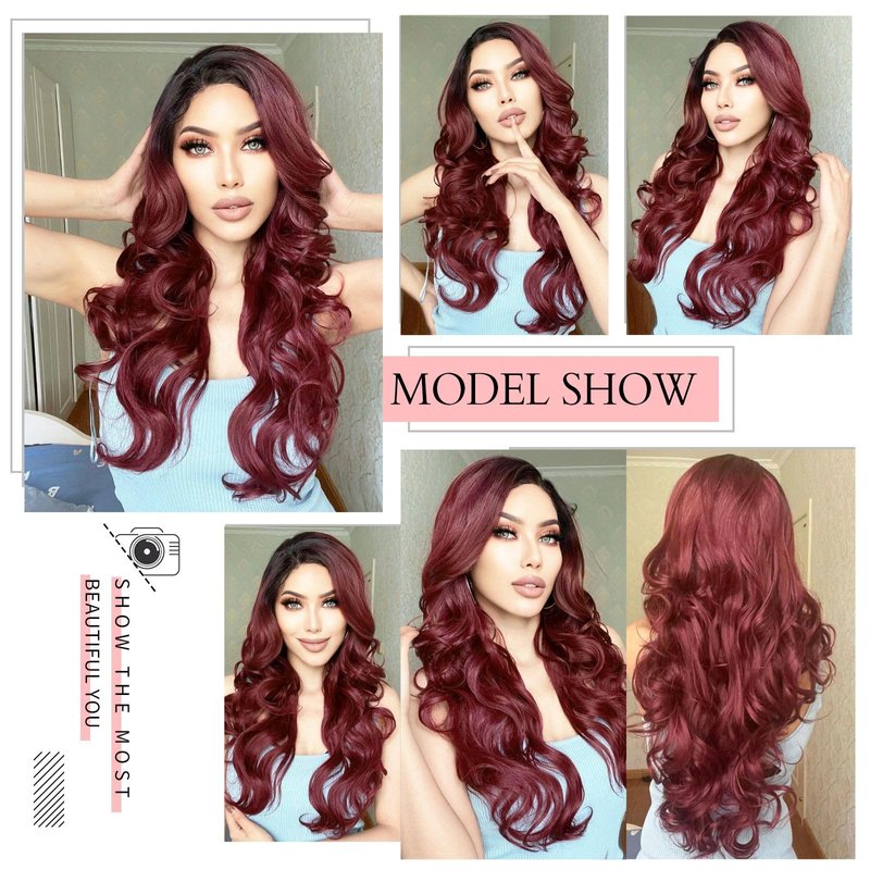 - ♥COLOR & LENGTH: The ombre wine red lace front wig is 26 Inches long, with flip and sexy body wavy design. Natural long curly lace front wigs are fashionable enough to make you more confident and charming.